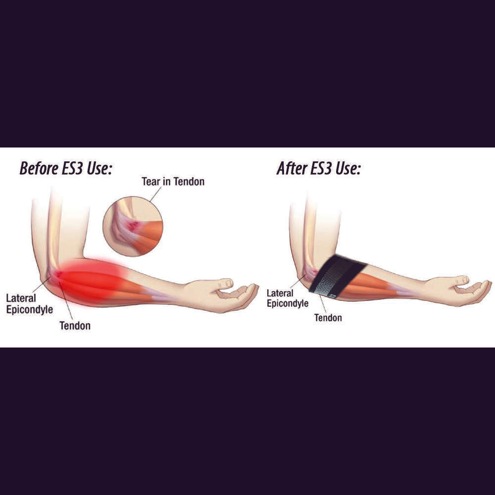 The ES3® Performance Elbow Sleeve provides medical grade orthopaedic support. Patent pending Compression Zone Technology® to provide pain relief and prevention. The ES3® provides relief for those suffering from tennis elbow, chronic elbow pain, swollen arthritic elbows, or bursitis.