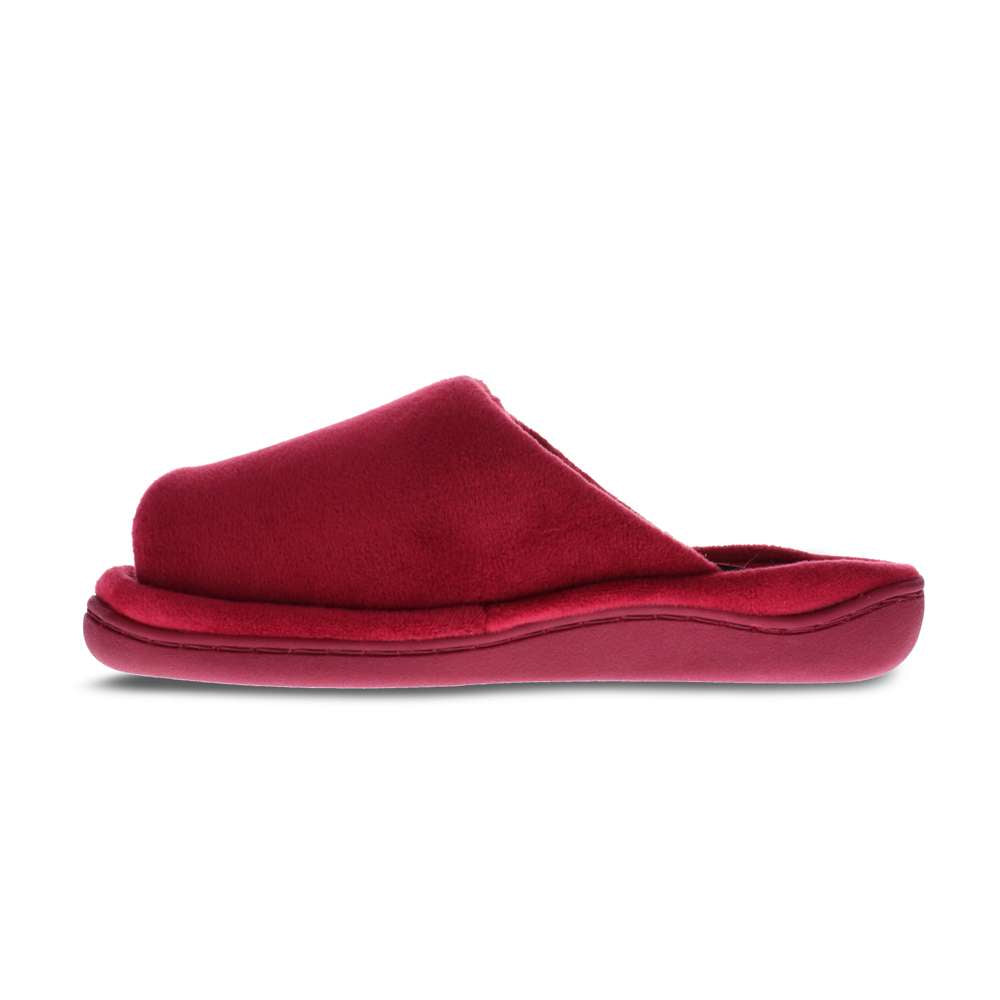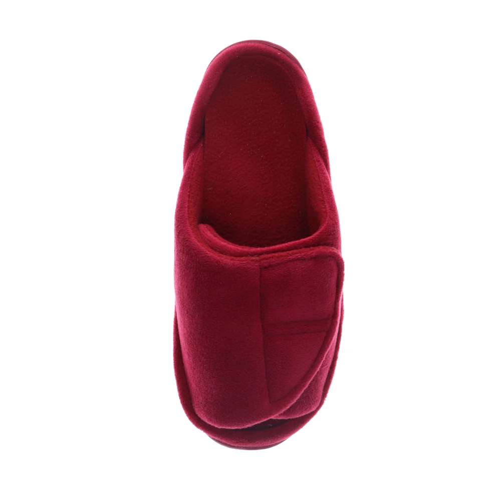 Open toe hook and loop slipper designed for all four seasons, giving you comfort and support all the time. Open back design for easy slip on and off. Textile upper and a workforce insert for added support.