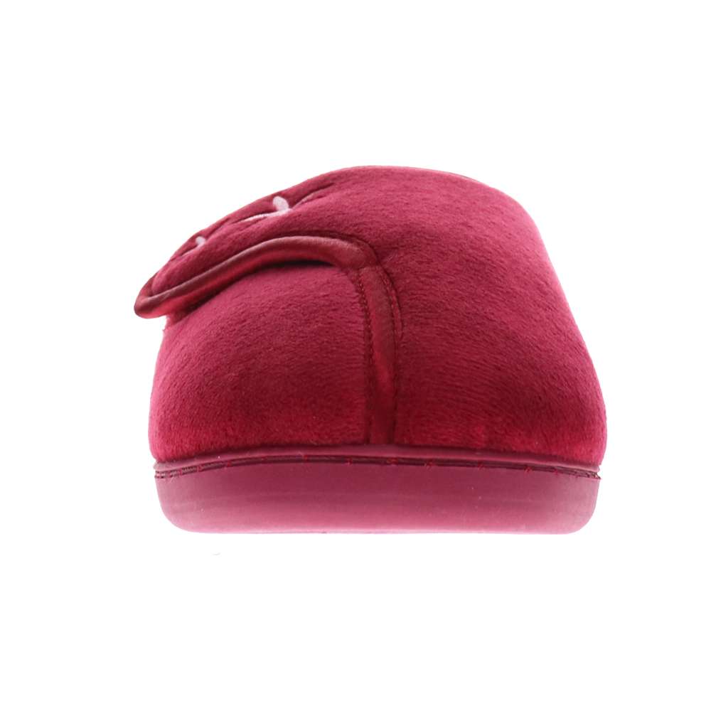 Hook and loop textile upper slipper with a synthetic wool lining. Designed with a workforce insert for all day and night comfort/support. Embroidered details on upper for extra design features.