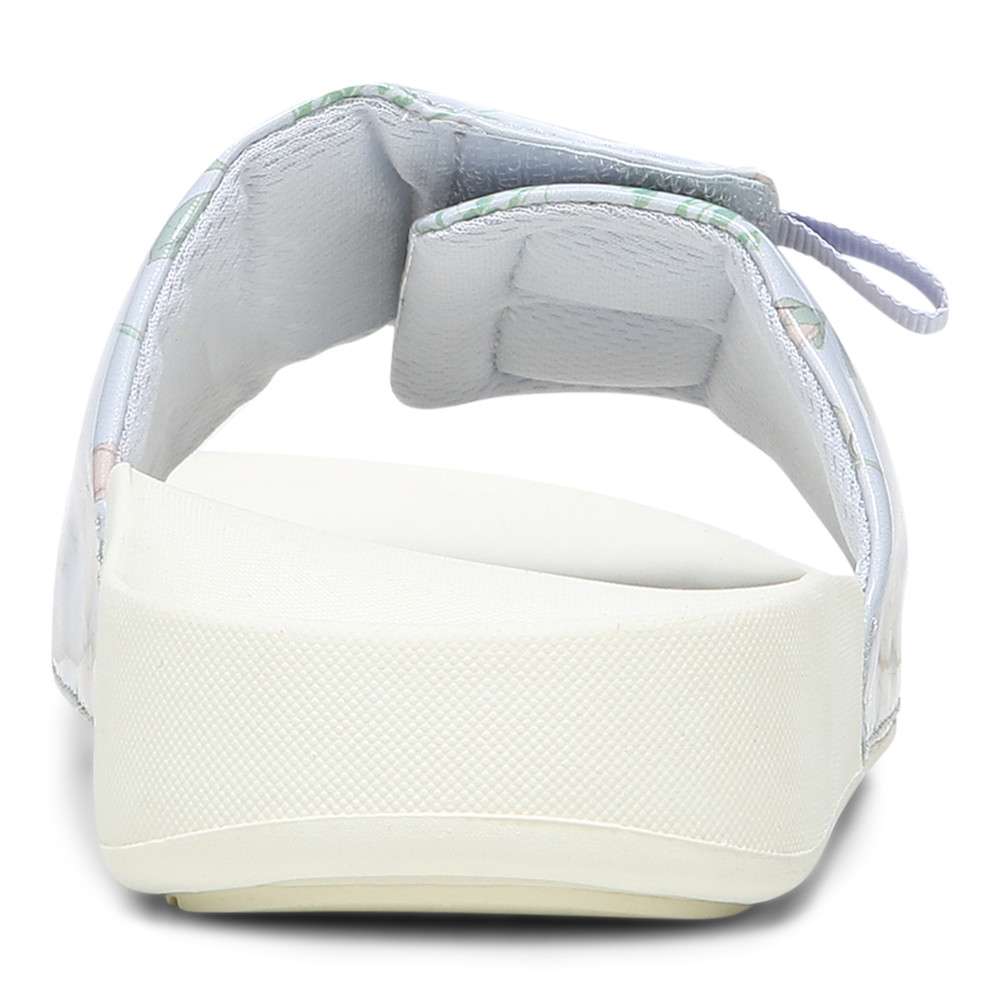 A sporty, wide-band slide with mesh upper in soft pastel/snake-print and everyday solid-color combinations, hook-&-loop fastening.